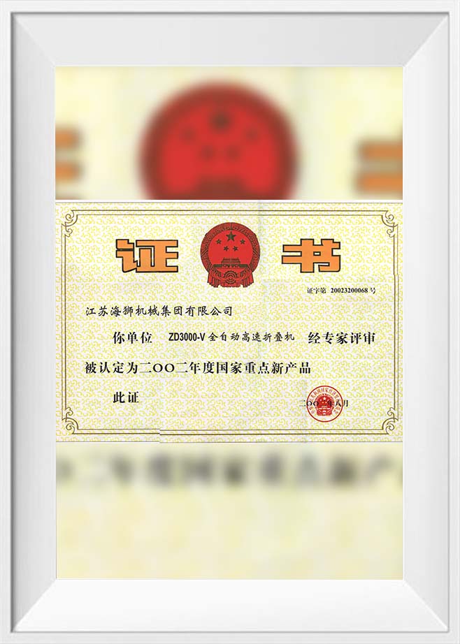 2002 National Key New Product: Folding Machine