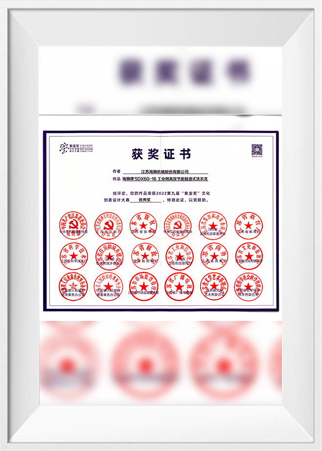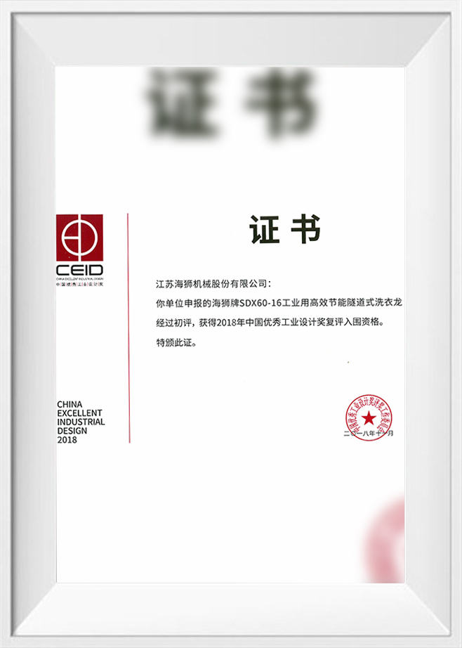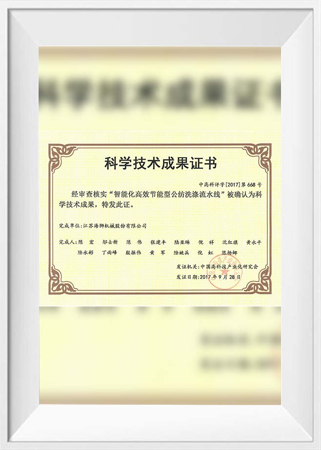February 18, 2019 Second Prize, 2018 National Science and Technology Progress Award (Research, Development, and Industrialization of Intelligent, High-Efficiency, Energy-Saving Public Textile Washing Production Lines)