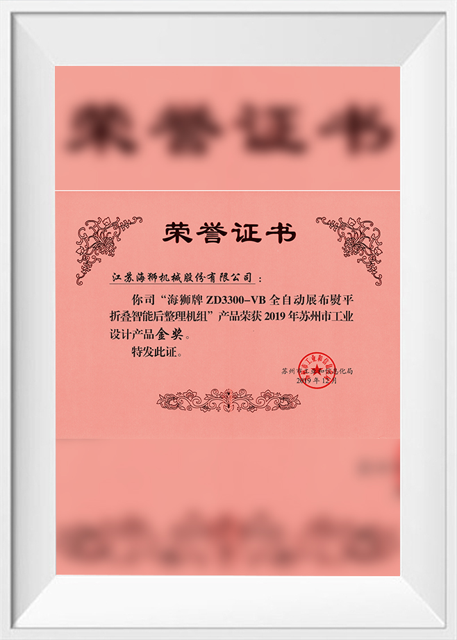 December 2019 Haisi ZD3300-VB Fully Automatic Fabric Spreading, Ironing, Folding, and Smart Finishing Unit Suzhou Industrial Design Product Gold Award