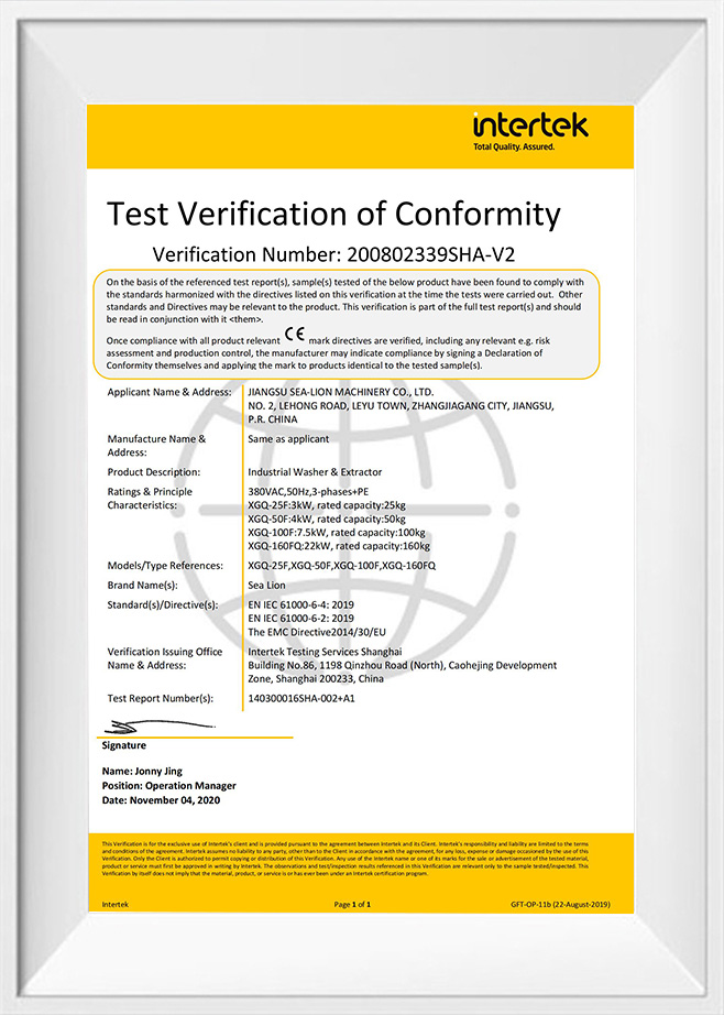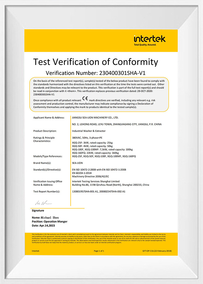 Established in 1969, Jiangsu Sea-lion Machinery Co., Ltd. (formerly Sea-lion Machinery Group[Corp.]) is the oldest manufacturer of industrial laundry machines in China, gaining a wealth of experiences on R&D and manufacturing with laundry machines. Sea-lion has an area of 166,000㎡ and a building area of 116,800㎡, and possesses the total assets of 620 million RMB. Sea-lion’s annual domestic sales can reach 510 million RMB, and annual export amount to 10 million US dollars. Sea-lion has the biggest product scale and the most comprehensive variety in the line of washing machinery in China, including 10 series, 20 varities and more than 100 types with an annual production capacity of 12,000 sets.