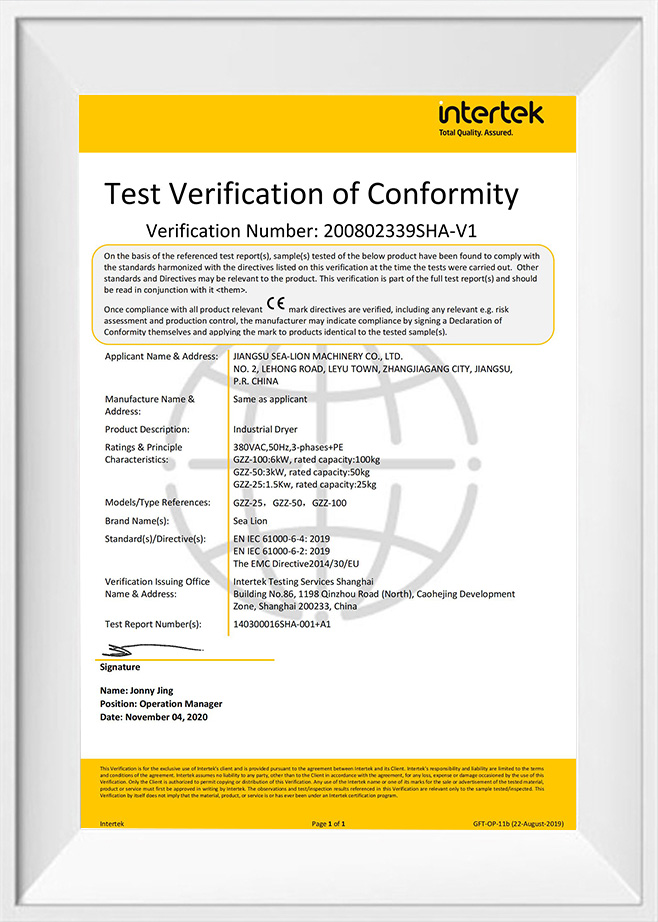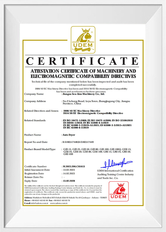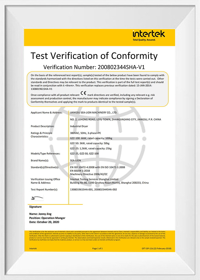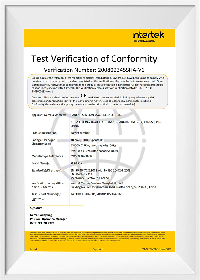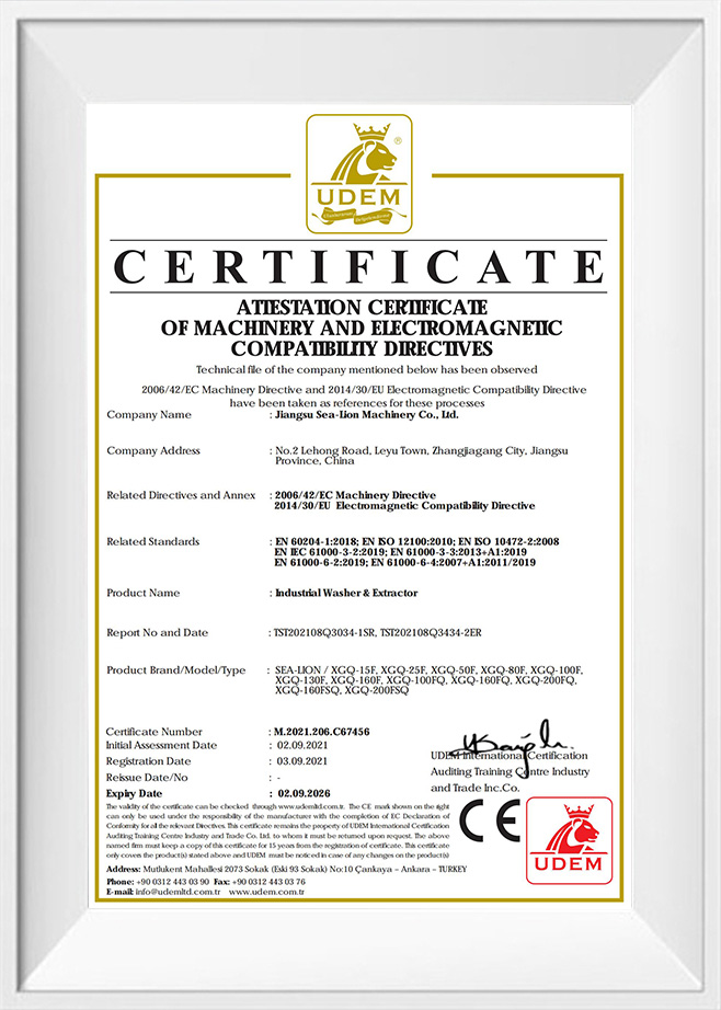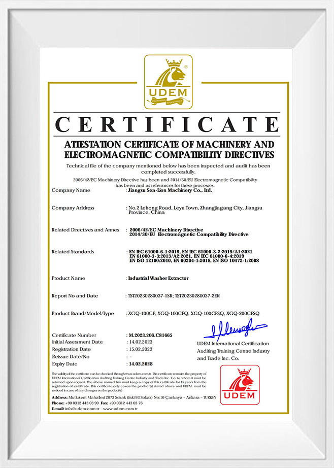 Throughout 55 years of development, Jiangsu Sea-Lion Machinery Co., Ltd. (formerly Sea-Lion Machinery Group[Corp.]) has been nominated as the National Hi-Tech Enterprise, and designated as Manufacturer of Military Logistics Laundry Machinery of PLA, also designated as Manufacturer of Tourist Industry Laundry Machinery, and joined the association of China Tourist Restaurant. Sea-Lion products have been awarded the National Quality Award, National Elite Product Award, National New Product Award, National No.1 of the Industry Award, and over 100 awards.